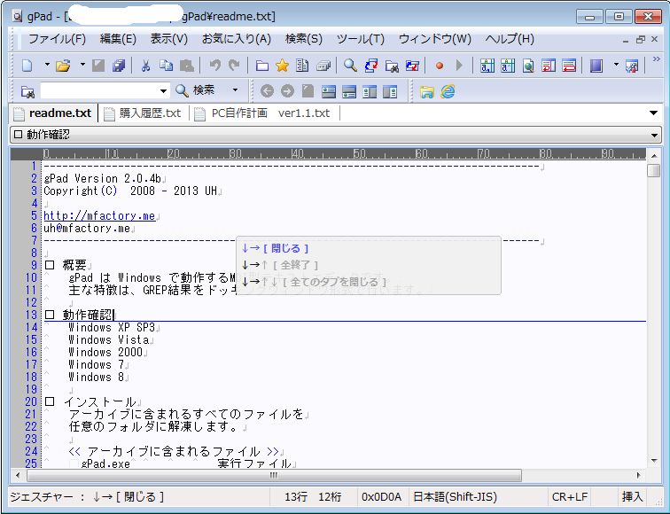 タブやマウスジェスチャーも使える高機能なテキストエディター「gPad」